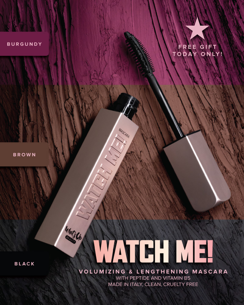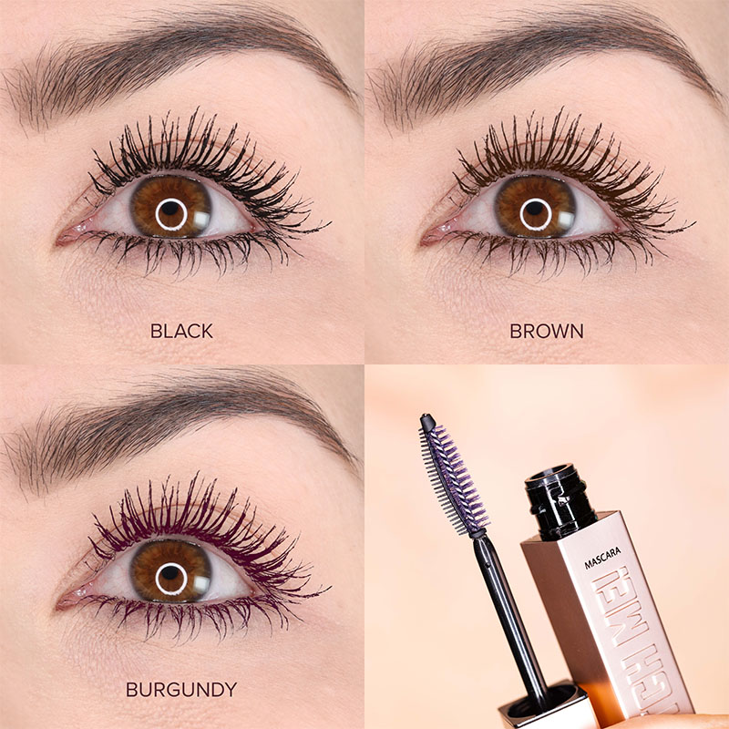 Our original black Watch Me! Volumizing and Lengthening Mascara quickly became one of our most-loved products, with many customers calling it their all-time favorite mascara, so we added two new shades by popular demand: a true brown and a true burgundy!