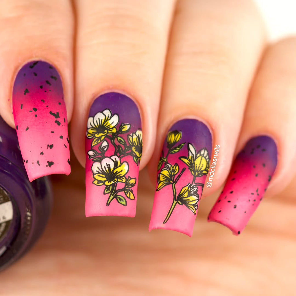 Stamp super cute nails designs with this stamping plate full of Spring images such as flowers, leaves, butterflies, carrots, decorated eggs, bunnies, baby chicks, and more. Great for Easter nails!